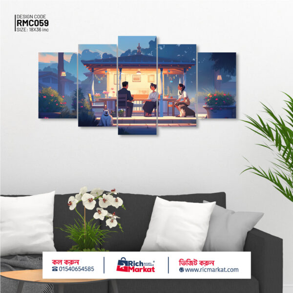 ৫টি অংশ মিলিয়ে এই ক্যানভাস সেটটি তৈরি হয়েছে, যেখানে প্রতিটি অংশের মাঝে সামান্য গ্যাপ রেখে মোট প্রস্থ ৩৬” ইঞ্চি এবং দৈর্ঘ্য ১৮” ইঞ্চি।
